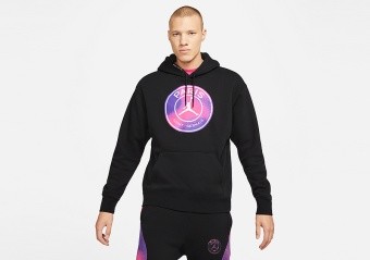 NIKE AIR JORDAN PSG PARIS SAINT-GERMAIN FLEECE PULLOVER HOODIE BLACK
